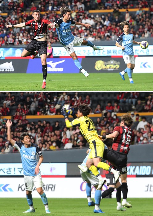 ¡¡¾å¡§²¼Ãʼ̿¿¡¿¸åȾ£³£¶Ê¬¡¢»¥ËڤΣ²ÅÀÌܤòÆþ¤ì¤¿£Ä£Æ²ÈÀô¡Êº¸¡Ë¤È¥Ü¡¼¥ë¤ò½¦¤Ã¤Æ£Æ£×¥¸¥ç¥ë¥Ç¥£¡¦¥µ¥ó¥Á¥§¥¹¡Ê±¦Ã¼¡Ë¤¬Áö¤ê½Ð¤¹¡¢Ãæ±ûÈØÅģģƹ¾ùõ¡Ê£µÈ֡ˤȡ¢¤½¤Î¸åÊý£Ç£Ë»°±º¤¬¶¦¤Ë¼ê¾å¤²¤Æ¥ª¥Õ¥µ¥¤¥É¤ò¥¢¥Ô¡¼¥ë