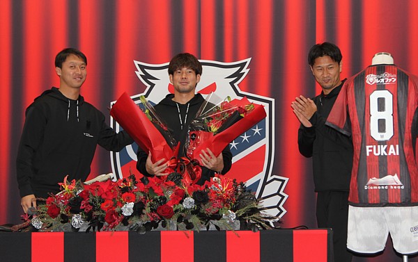 上:上段写真/引退セレモニーであいさつする深井一希選手、「将来、監督として戻ってくるのが夢」と語った