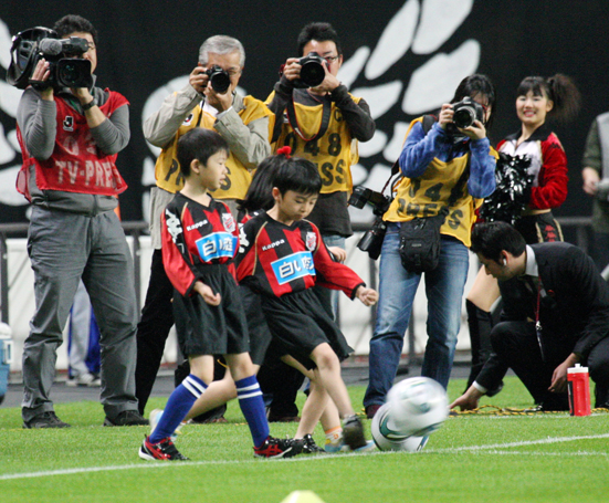上写真/試合開始前、かわいい子どもたちがキックインセレモニーを行った