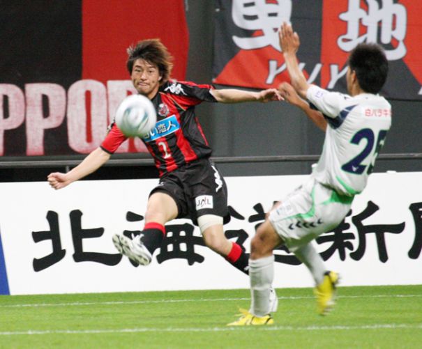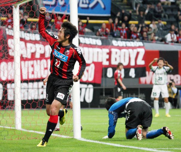 一進一退の展開が続いていた後半15分、追加点が欲しい札幌は、右サイドバック日高からの絶妙なクロスをFW三上がヘッドで応え、この日2点目となるゴール。若きFWの活躍に沸いたホームゲームで、今季2勝目を挙げた。