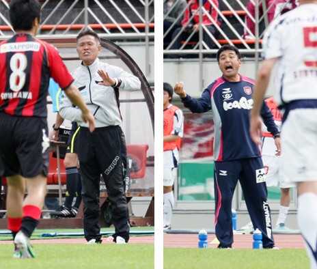 上写真左/試合中MF砂川に指示を出す札幌の石崎信弘監督