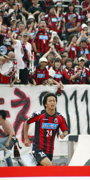 上写真/この日2得点の札幌FW横野(24番)に代わってゴール裏スタンドに迎えられた同点弾となる今季初ゴールを決めたFW内村(13番)にもサポーターから熱い拍手が送られた