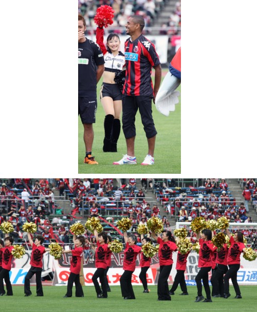 上:下段写真/今年も60歳以上の女性のダンスチーム「月下美人」が結成され、試合前踊りを披露してコンサドーレ札幌を応援した