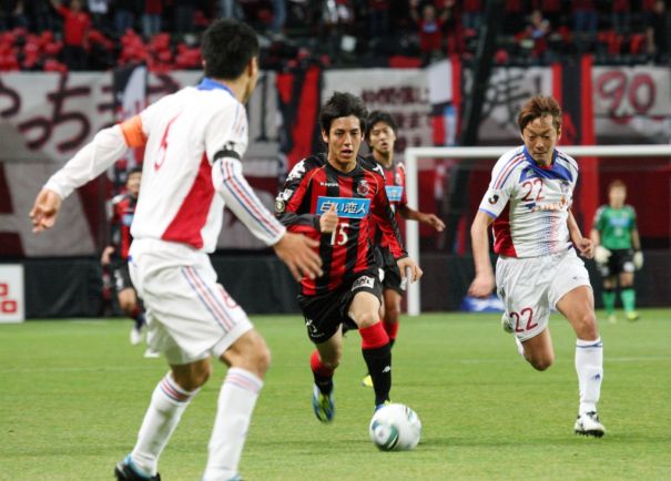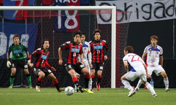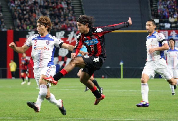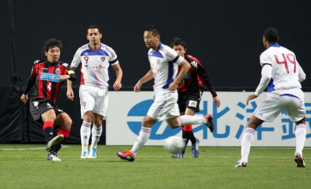 上写真/前半ロスタイム2分札幌のFW近藤(32番)がMF古田からのパスを受け、東京DF今野(6番)を置き去りにして内村へ絶妙のパス。貴重な2点目をアシストした