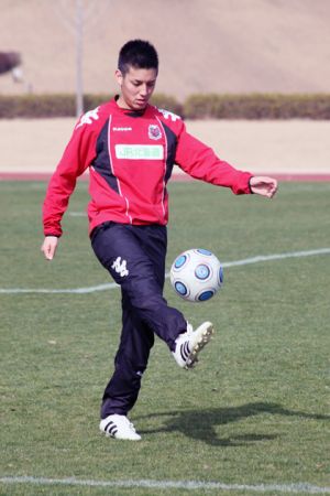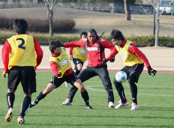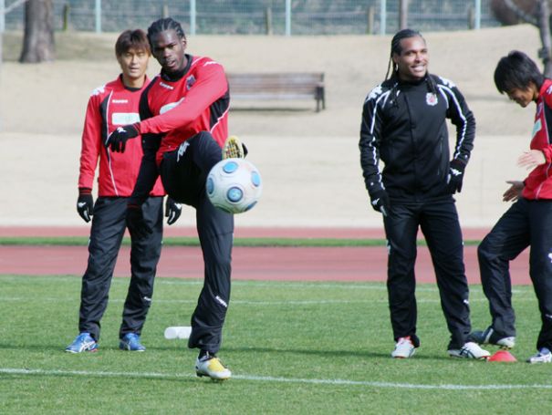 2月12日(木)から、熊本県で2次キャンプを行っているコンサドーレ札幌。3月1日、JFLのニューウェーブ北九州と練習試合を行い2−1で勝利を挙げた。この日は、石崎信弘監督(50)の目指す「攻撃的守備」の形からゴールが生まれた。前半40分、積極的なプレスからMF上里一将(22)がボールを奪い、MFクライトン(31)がゴール。これで、開幕前の対外試合は7戦4勝1分け2敗と仕上がりは上々。