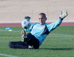 左写真:最年長で新加入のGK荒谷