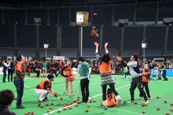 上写真/選手と一緒に玉入れを楽しむサポーターたち。右手前の選手はFW横野