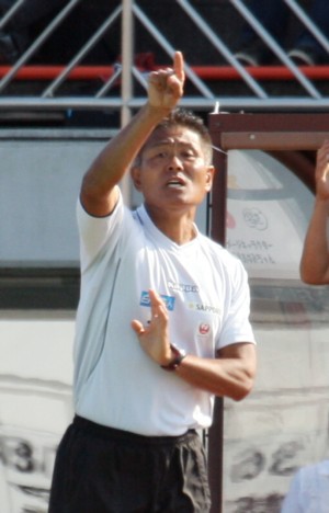 上写真/後半追加タイム2分、懸命に指示を出す札幌の石崎信弘監督