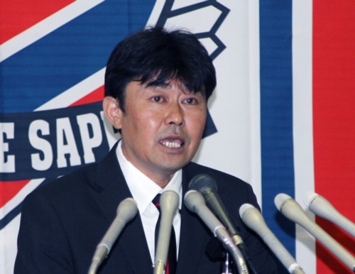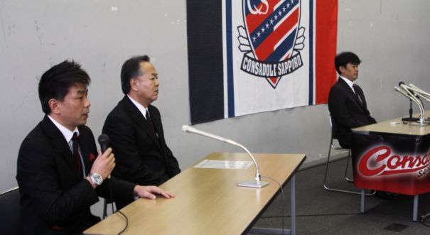 北海道フットボールクラブ(HFC=矢萩竹美社長)は2012年12月14日、コンサドーレ札幌の新監督に財前恵一氏(44)を選び、就任記者会見を行った。財前氏は、アビスパ福岡のU−18監督からの就任で、2月1日から1年契約。