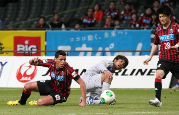 コンサドーレ札幌の巨漢FWテレ(19番)が献身的プレーでピッチを走り回っている。
