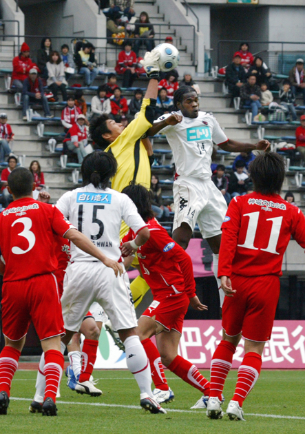 次節は、クライトンと累積警告で出場停止のダニルソンを欠いて、4月12日(日)、札幌ドームでカターレ富山と戦う。(写真はいずれも4月5日、熊本県民総合運動公園陸上競技場。撮影・石井一弘)