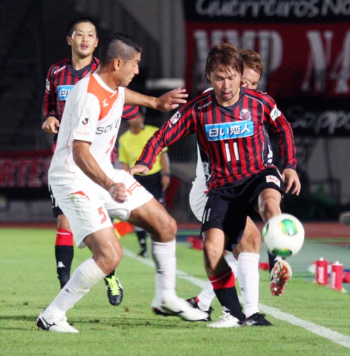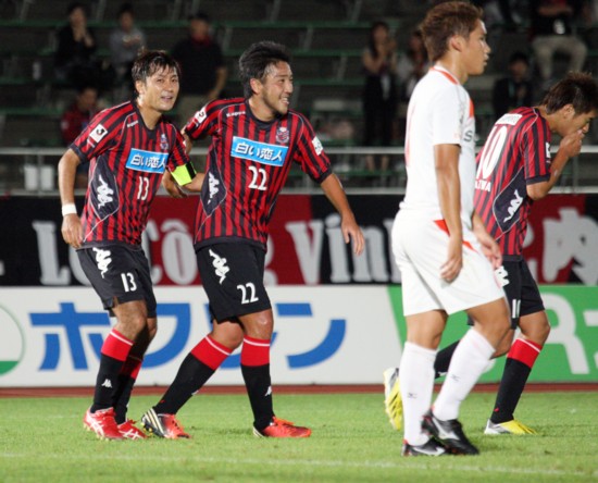 勢い付いた札幌は、前半終了間際の44分。MF上里が蹴った左コーナーキックを愛媛DFがクリアーミス。このこぼれ球にいち早く反応したFW内村がゴールへ押し込み2−0。