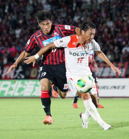 上写真/後半39分札幌MF内村(13番)はGKと1対1となり、この日2点目か? と思われたが、GKに抑えられ追加点成らず