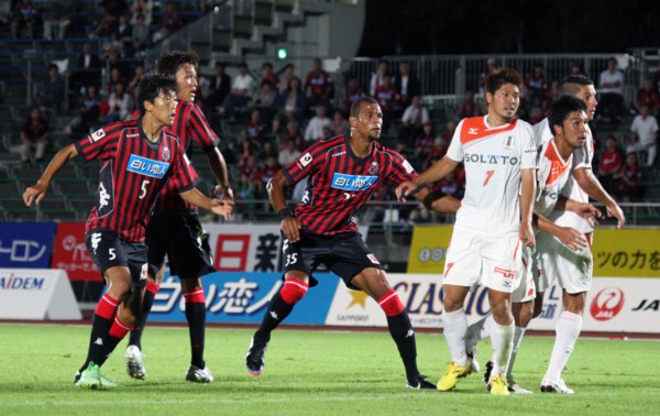 札幌がCKを得た時、上里はすでに河合と代わっていた。砂川はベンチに座ったままだ。「誰が蹴るのかなぁー」と思っていたら、何と、3分前に内村に代わって途中出場したばかりのビンがコーナーに行くではないか。