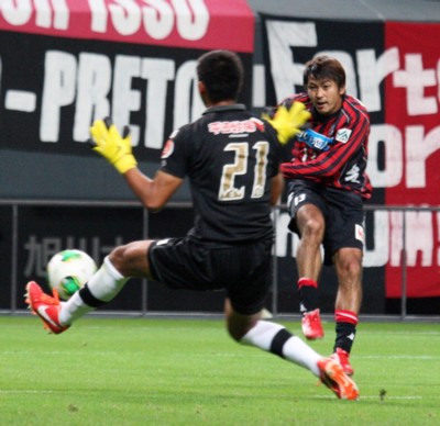 勢いに乗った札幌は直後の同20分、バックパスを受けたGK常澤にFW内村が猛然とプレッシャーをかけボールを奪取。そのまま無人のゴールに流し込み3−1と試合を決めた。