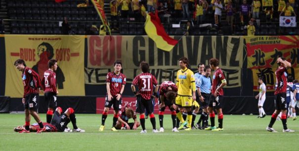 一番の決定機は、後半27分から交代で入っていたレ コン ビンの直接フリーキック。利き足の右で狙うには絶好の位置から鋭いキック。相手キーパーも届かず入ったか―と、思った瞬間、右ポスト直撃。サポーターのため息に変わった。