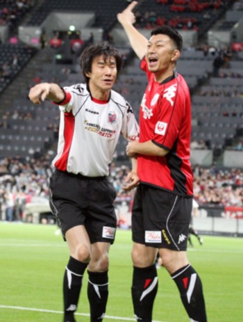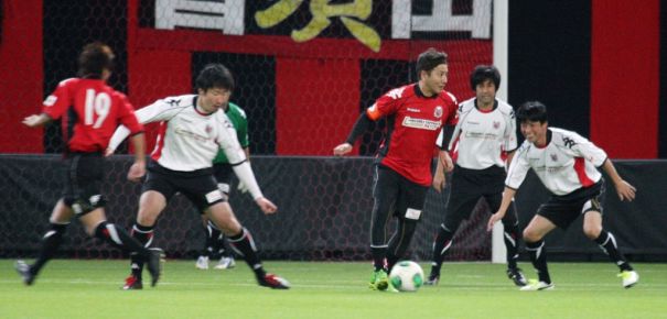 11月24日、コンサドーレ札幌対ギラヴァンツ北九州の試合の前に、札幌のOB選手によるレジェンドマッチが行われた。日本サッカー界のスーパースターで、昨年まで札幌に在籍したFW中山雅史が率いる「チーム・ゴン」(白いユニホーム)と、今年からHFCの社長の重責を担う、かつてのキャプテンMF野々村芳和が率いる「チーム・ノノ」(赤いユニホーム)が対戦、熱戦を繰り広げた。どの選手も年はとっても、さすがはアスリート、体のバランスもよく、今でも十分にやれるのではないかと思わせるほどのプレーを見せてくれた。