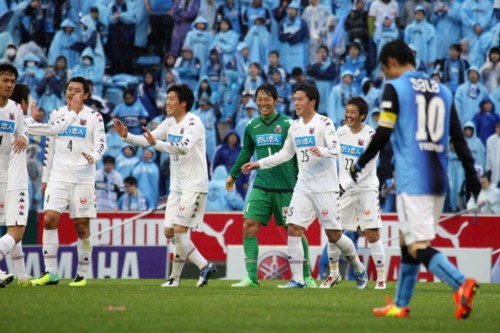 相手は、日本代表のDF伊野波、DF駒野、元日本代表のMF松井、MF山田、FW前田を擁する豪華な顔ぶれの選手がそろったJ2優勝候補。