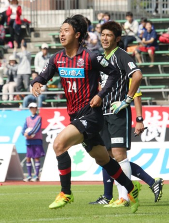 勢いに乗ると、同35分。ゴールほぼ正面で得た直接フリーキックを蹴るのはMF砂川。右足から放たれたキックは、華麗に曲がりゴールに吸い込まれ2−0。厚別の『風』を知り尽くす男の見事な一発だった。