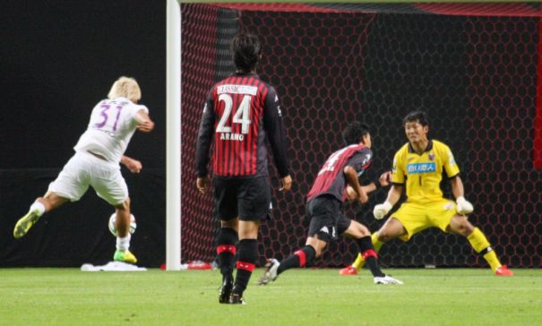 すると後半25分、集中して抑えていた札幌守備陣に一瞬の隙が生まれる。これを見逃さなかったのは元日本代表の京都FW大黒。スピードのあるダッシュから右足で低い弾道のミドルシュートを決められた。