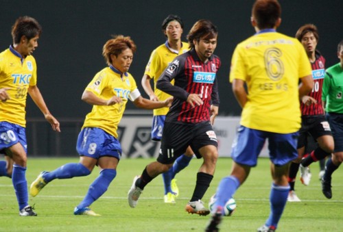 連敗中の両チームは互いに勝利がほしい一戦。試合立ち上がりから積極的なプレーが目立った。先にスコアを動かしたのは栃木。前半10分、左サイドでトライアングルを作り、テンポ良くボールをつなぐと、最後はDF荒堀が右足で思いきり良くロングシュート。カーブのかかったボールは札幌GK金山の手をかすめ、札幌ゴールに吸い込まれた。