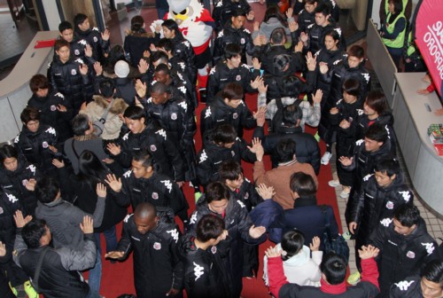 上写真/普段はあまり見せない選手の様子に会場を埋めたサポーターは大喜びだった