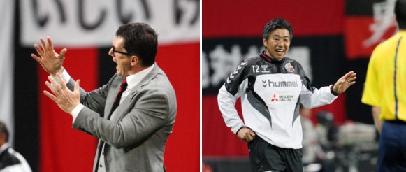 上:左側写真/後半42分、押し込まれる展開に懸命に指示を出す札幌のバルバリッチ監督