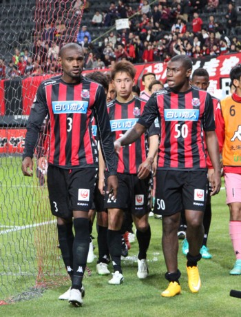 上写真/長崎戦で後半に顔をそろえた外国人助っ人のDFパウロン(3番)、FWナザリト(50番)、MFニウド(その右、顔が半分見える)だったが、結果は残せなかった