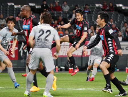 その後、札幌は試合を優位に進めるものの、追加点を奪うことが出来ず前半終了。1点リードで折り返したが、後半12分、福岡にDFラインから一気のロングボール攻撃を受ける。右サイドでこぼれ球を拾った福岡FW中原が中央へセンタリングを送ると、中央で待っていた福岡MF城後が頭でフワリと後方に流す。これにフリーで走り込んできた福岡FW坂田のダイレクトシュートで同点。
