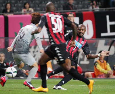 その意図は試合序盤から伝わり、成果は前半15分に現れる。DFパウロンが前線のFWナザリトにグラウンダーでくさびのパスを通すと、裏に抜けたFW都倉にワンタッチではたく。ボールを受けた都倉は目の前のDFを大きなフェイントでかわし、ペナルティーエリア外から左足を振り向く。体重の乗ったスピードのあるボールがゴール左隅に突き刺さった。