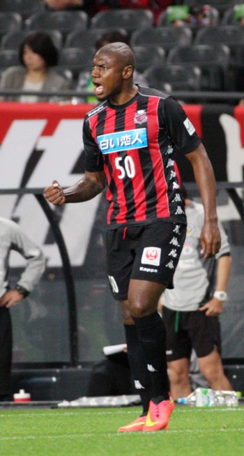 上写真/後半25分、同点ゴールを決めガッツポーズの札幌FWナザリト(50番)