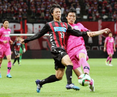 上写真/前半41分、札幌FW内村(13番)がドリブルで持ち込み、駆け上がってきたDF福森にパス
