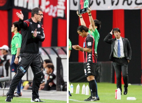 上:上段写真/後半22分、なぜか自軍ベンチに向かって大声を出す札幌のバルバリッチ監督