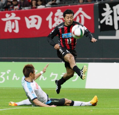 上写真/後半26分、札幌FW都倉がMF稲本のパスを受けてドリブルで持ち込み、2点目となるゴールを左足で決める