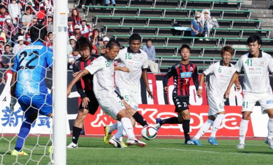 しかしチャンスの数は増えたものの、得点を奪えないでいると、後半35分には、抜け出した岐阜FWレオミネイロをDF福森が倒しPK献上。ここは、レオミネイロの蹴ったボールがバーに直撃し、失点は免れた。