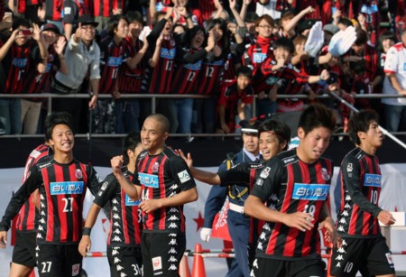 MF小野に加えて稲本もチームに加入したが、ともにけがで“そろい踏み”の試合数が少なく残念だった。終盤かなりいいシーンが見られたが、時間切れの感じだった。そんな中、小野がトップ下に入ってからいい展開が多かったように思う。2得点はもちろん物足りないが、第36節、金沢戦での小野の決勝ゴールは会場が“聖地・厚別”とあってゴール裏に走った小野とサポーターが一体となって心地よかった(写真6)。