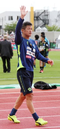 上写真/カズの人気は函館でもすごい。練習後、子供たちの声援にこたえる三浦知良