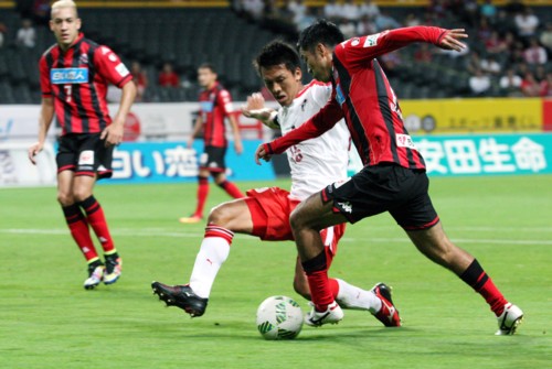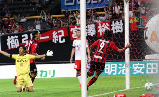 熊本は前半26分、ロングボールをFW巻が落としてDF藏川へ。藏川がペナルティーエリア右から中央へクロス。これを札幌MFマセードのクリアーミスがありボールは熊本MF岡本へ転がる。一瞬フリーとなった岡本は、左足でグラウンダーシュートを放つもわずかにゴールの右。内村は前半27分にもペナルティーエリア内でFW都倉のヒールぎみのうまいパスから抜け出し、ループシュートを放つも仕留めきれなかった。