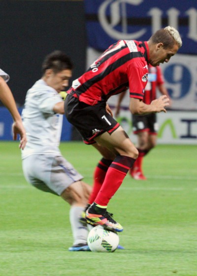 9月26日のFC町田ゼルビア戦で撮った写真の中に、こんなシーンを見つけた。この日、2ゴールと勝利に貢献した札幌MFジュリーニョがサーカスのような曲芸をしていた。