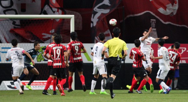 押し込んでいた後半28分、途中出場のFW内村が相手陣内左サイド深くでボールを受け、戻るドリブルから右足でふわりとしたクロスをあげる。これをペナルティーエリア内で待ち構えていたのが頼りになる男都倉。C大阪DFを押しのける巧みな駆け引きから強烈なヘディング弾を叩き込み同点。ホームのボルテージが沸点に到達した。