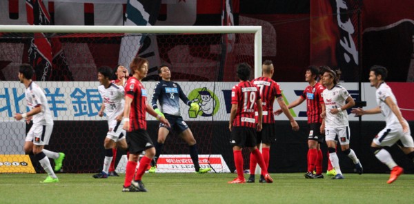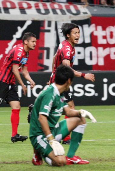 札幌の惜しい攻撃は前半23分。ハーフウエーラインからMF宮澤が前線へロングフィード。これを都倉が頭でペナルティーエリア内へ送り、混戦の中ボールはDF横山からMF兵藤へ。兵藤のシュートはキーパーの脇を抜けるもC大阪DFにカバーされ得点ならず。一進一退の激しい攻防を見せ0−1のまま折り返す。