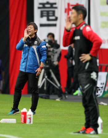 上写真/後半35分、ともに選手を鼓舞する川崎の鬼木達監督(左)と札幌の四方田修平監