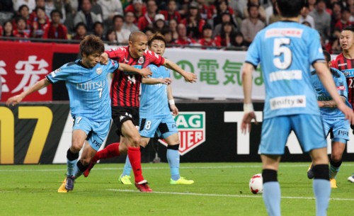 対する川崎は徐々に圧力を強め、前半18分、札幌がクリアーしきれなかったボールを拾った川崎DF田坂が強烈なミドルシュート。これは札幌GKクがパンチングで防ぐ。さらに前半22分、川崎MFエドゥアルド・ネットがドリブルでペナルティーアークまで侵入、左足でシュートを放ったがボールは枠の外へ。