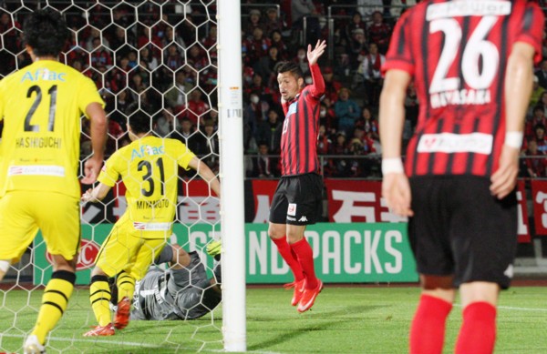 簡単には引き下がらない柏は後半28分、相手陣内右サイドから高いクロスを放り込む。これを柏FWハモンロペスがゴールラインぎりぎりの所で折り返すとボールはペナルティーエリア手前の柏MF栗澤へ戻る。ここからワンタッチのパス交換で栗澤から途中出場の柏FWクリスティアーノ、最後はペナルティーエリア手前の柏DF宮本へ落とす。宮本が強烈なミドルシュートを放つとボールはゴール右に突き刺さり1点差。