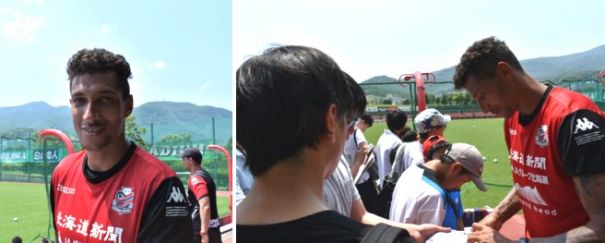 北海道コンサドーレ札幌は後半戦に入って、初めてイングランド出身選手を補強した。7月1日に加入決定のニュースが流れ、Jリーグのジュビロ磐田でプレーしたこともあるジェイ・ボスロイド(35)。さらにタイからのチャナティップ・ソングラシン(23)もそろって14日から17日までの連休にかけて、札幌市西区宮の沢の「白い恋人サッカー場」で練習マッチなどに登場。連日、サポーターやファンが詰めかけていた。