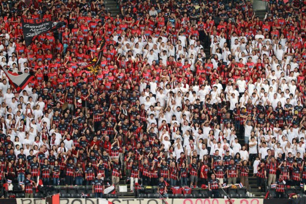 上写真/一方、札幌も白い“12”の人文字を見事に描いていた。チームカラーが両チームとも赤が基調なので札幌ドーム全体が赤く染まったようだった
