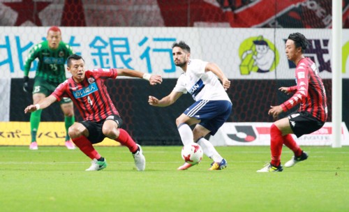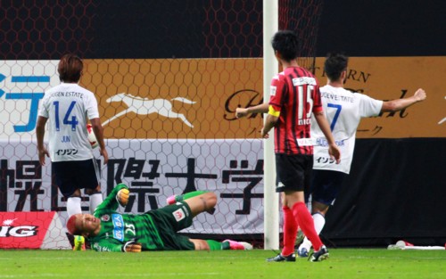 前半、札幌は惜しいチャンスを作っていた。前半18分の左コーナーキックからFW都倉のヘッド、前半22分には都倉のパスカットからFWヘイスの右足ミドルシュート、しかしいずれも横浜GK飯倉の好セーブに阻まれる。