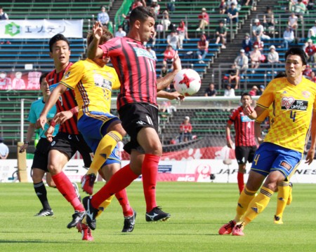 さらに札幌の決定機は続き、前半24分、右サイド敵陣深くをMFチャナティップがドリブルでDF2人を交わし中央へクロスを供給。ニアサイドに飛び込んで来た都倉が頭で合わすも、これはポストに嫌われてゴールにはならず。後一歩の惜しいチャンスは作ったものの結局スコアレスで試合を折り返す。