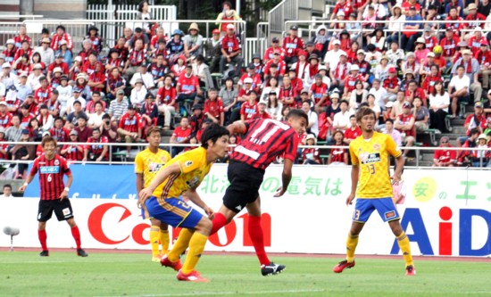 前半20分には、右サイド敵陣深くをMF早坂が都倉とのワンツーで崩し、ペナルティーエリア右まで侵入し左足シュート。相手DFに当たったボールはGKを越えてゴールに向かうもライン際ギリギリで仙台DF大岩にクリアされ得点とはならず。