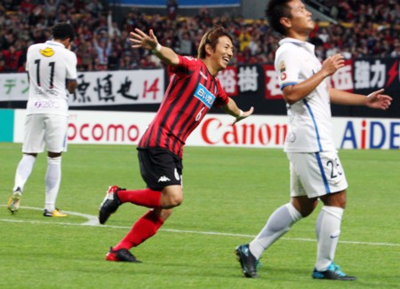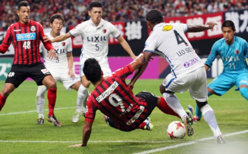 後半12分も鹿島の攻撃、スルーパスに反応した金崎が右サイドを駆け上がりペナルティーエリア右から中央へ走り込んできた土居へパスを送る。土居はワンタッチでシュートを放つもクがビッグセーブを見せピンチを救う。